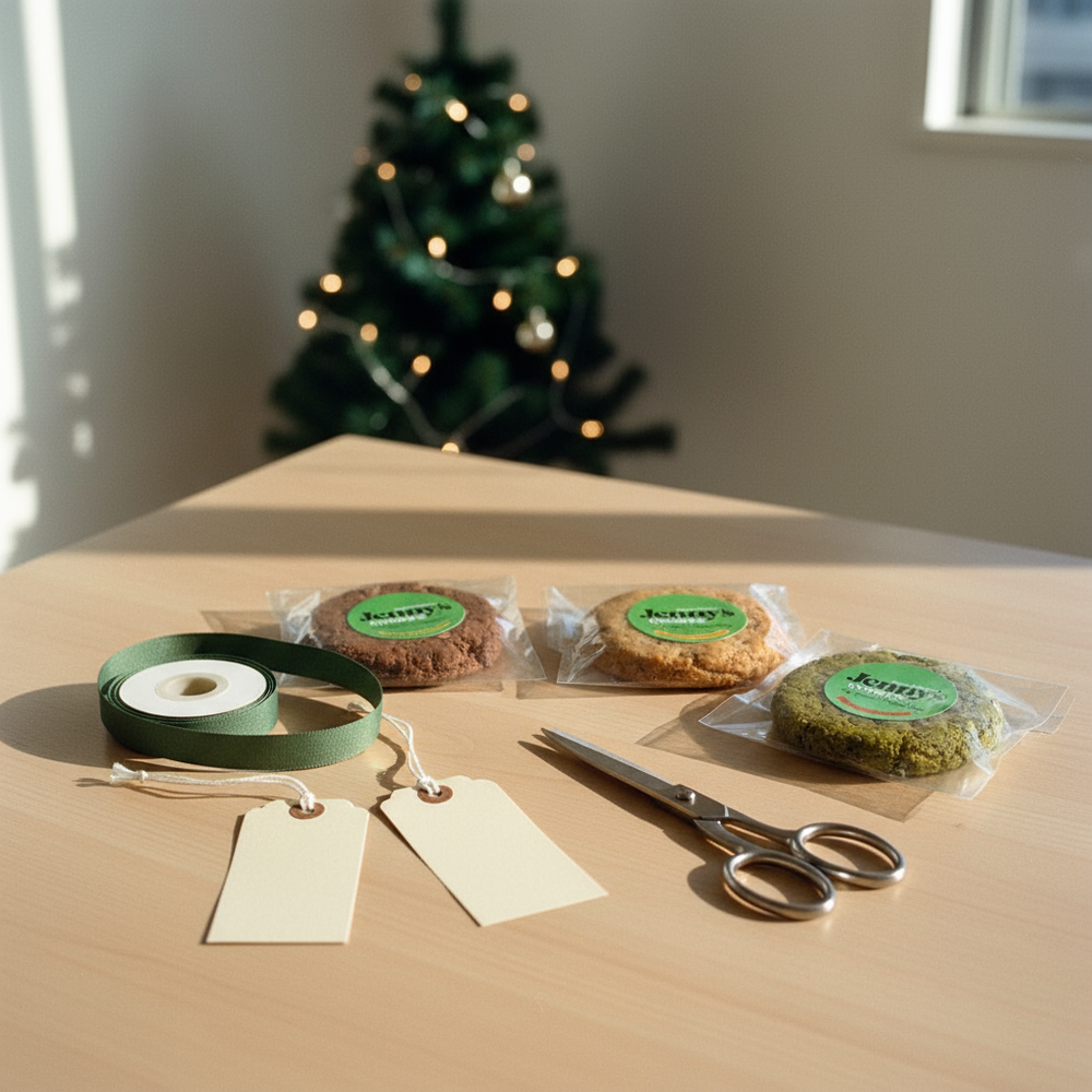 クリスマス&忘年会の差し入れは“機能するおやつ”。個包装のグルテンフリー・プロテインクッキーで、人数×予算早見表・文例・12/48枚のまとめ買い術をJennyが解説。